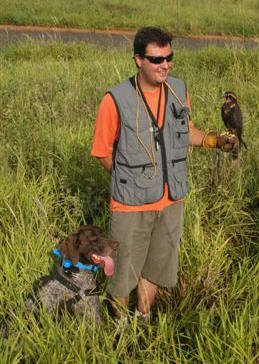 Foi assim o começo da Matéria sobre a falcoaria publicada na Revista da Folha, em 28 de Janeiro de 2007. O Braco Alemão em questão era, ninguém menos do que o nosso Homero... Homero foi o primeiro (e por enquanto único) braco no Brasil a participar desta modalidade de caça esportiva - na verdade, uma simulação, já que em São Paulo a caça não é permitida. Sua performance no campo é impressionante. Instinto e treinamento perfeitamente sintonizados para um belo exercício no campo. O uso de cães apontadores para a falcoaria é, de certa forma, uma volta ao princípio da caça, quando as aves faziam as vezes das armas na caça de subsistência. Com o passar dos tempos, o esporte caiu no gosto da nobreza e se transformou num esporte real. Na foto ao lado, o trio completo: Alexandre, Homero e Killer. |
