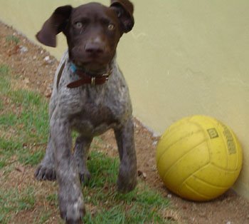 Homero foi escolhido pelo Alexandre antes mesmo de nascer... Alexandre queria um cão que tivesse todas as condições para acompanhá-lo no esporte da Falcoaria e chegou ao Canil do Balaco Braco... esperou a ninhada nascer e depois ficou na torcida para escolher quem seria o ´seu cão´... veio escolher, olhou, olhou e ficou entre 2 filhotes: Homero e Heros... mas, na verdade, ele saiu daqui com a decisão tomada... Queria mesmo era o Homero, com sua marcação diferenciada - o mais marcado dos filhotes - seu temperamento exuberante e excelente estrutura. Agora é só esperar para ver como se comportará com o seu mais novo companheiro de trabalho: o falcão do Alexandre. |