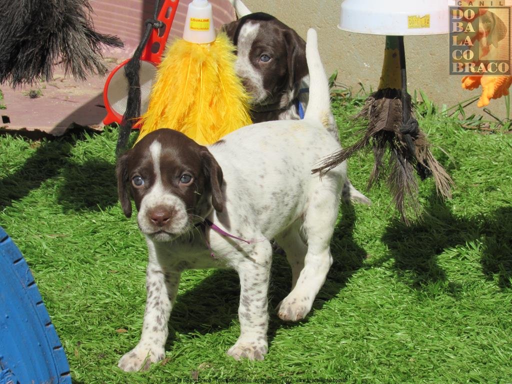 A mãe de Sting é nossa Twiggy (Shortales Brazos River Dreamcatcher Balaco Braco), fêmea importada dos EUA, que traz em seu pedigree uma verdadeira aula de história da evolução do Braco Alemão, além dos grandes nomes recentes da raça,
